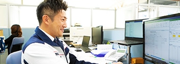 事務業務は、自動車メーカーと部品メーカーの情報を倉庫管理者に繋ぐ責任ある大切な仕事です。ロジコム独自のシステムで入庫・保管・出庫管理をパソコン上で管理しています。担当部品メーカー様からの以来を受け丁寧に対応し、自動車メーカーの日々変動する細やかなオーダーに合わせて迅速に対応しております。お客様の信頼を得るため、社員一丸となり品質向上に取り組んでおります。将来は、事務業務のみならず営業所運営に携わります。事務班員の勤怠管理を行い、常に迅速な対応ができるように教育していきます。